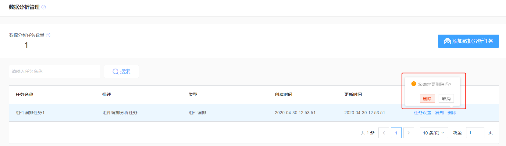 通过单击数据分析 > 数据分析管理管理,进入任务管理页面。